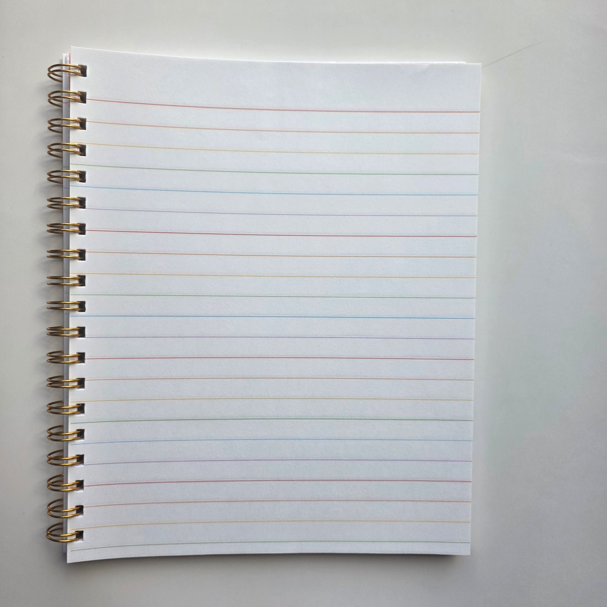 Inside, you’ll find soft rainbow-lined pages that keep your notes neat while adding just the right amount of color to your writing.