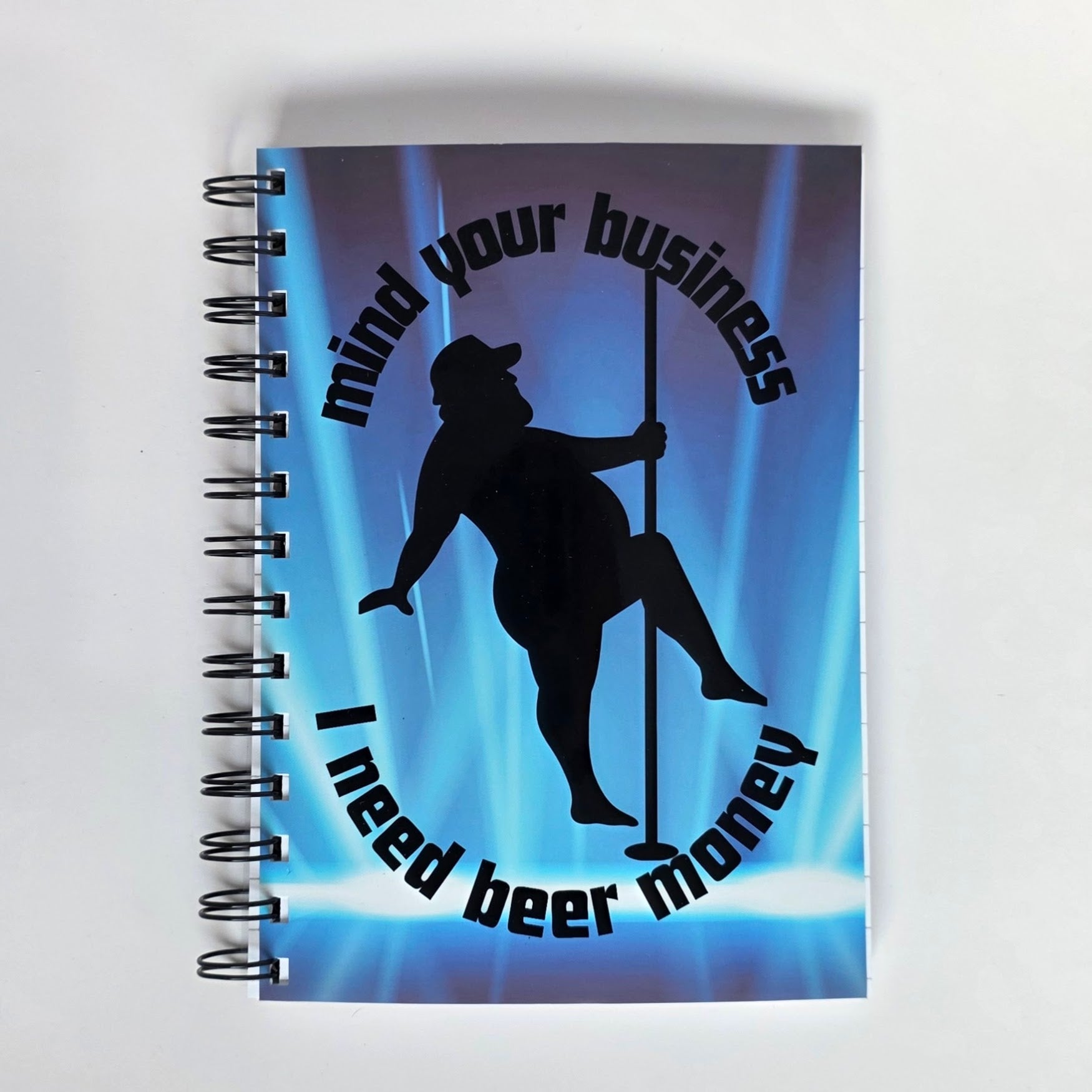 A little sass, a little humor, and a lot of personality — the Mind Your Business, I Need Beer Money Notebook is perfect for anyone who doesn’t take life too seriously. Featuring a cheeky pole-dancing silhouette on a glowing blue background, this notebook is bound to get laughs while still being totally practical.